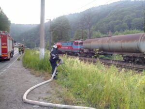 Un vagon încărcat cu 56 de tone de benzină a luat foc în această dimineaţă la ieşirea din Buşteni către Azuga, traficul feroviar fiind blocat pe Valea Prahovei.