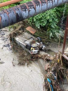 O maşină a fost luată de viitură, în această dimineaţă la Sinaia, anunţă primăria.