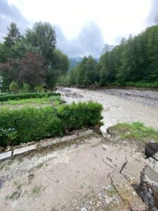 Din cauza ploilor care au căzut în cantităţi mari, , pârâul Izvorul Dorului a ieşit din albie, iar patru gospodării au fost inundate şi un autoturism a fost luat de viitură.