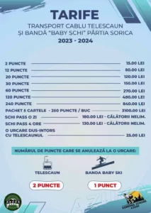 De asemenea, Domeniul Schiabil Azuga vă prezintă noile preţuri ale instalaţiilor de transport pe cablu!