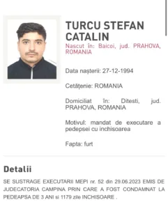 Astfel, a fost adus un bărbat de 29 de ani – Turcu Ştefan Cătălin, domiciliat în Prahova, urmărit internaţional pentru furt calificat. Acesta a fost adus din Franţa, având emis de către Judecătoria Câmpina, pe numele lui, un mandat de executare a pedepsei cu închisoarea de 3 ani şi 1.179 de zile.