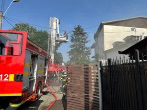 Pompierii ploieșteni intervin în cazul unui alt incendiu produs în Ploiești, la o locuință de pe strada Roșiori.